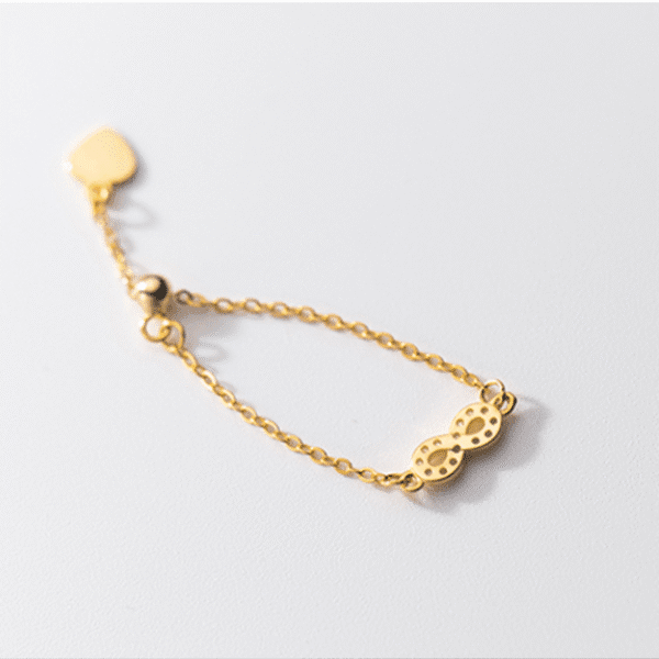 La deuxième bague arbore un élégant charm représentant le signe de l'infini, symbole de l'amour éternel et des possibilités infinies. Les zircons accentuent les courbes gracieuses du signe de l'infini, ajoutant une touche d'éclat et de sophistication.