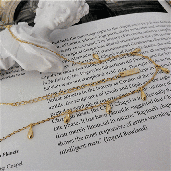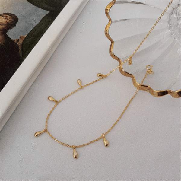 Doté d'une chaîne délicate ornée de multiples breloques en forme de goutte d'eau, ce collier capture la beauté scintillante des gouttes de rosée. Les délicates gouttes d'eau pendent gracieusement, créant un mouvement subtil et séduisant qui ajoute une touche de fantaisie à votre tenue.
