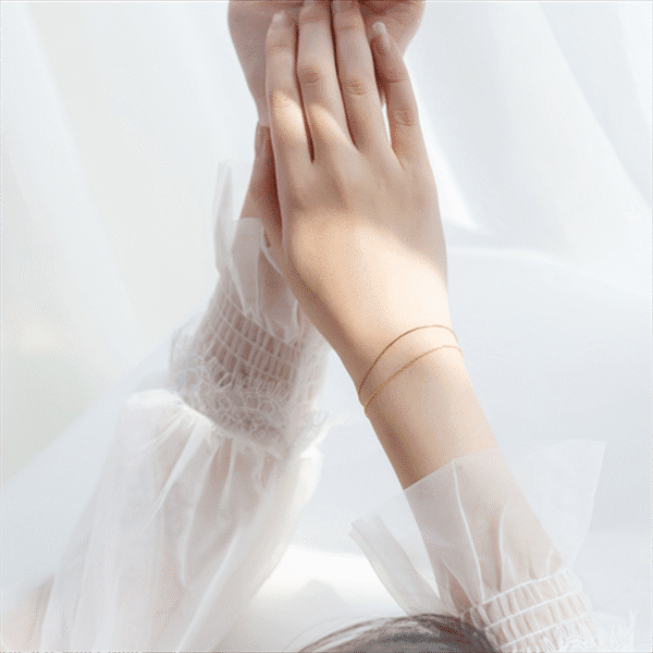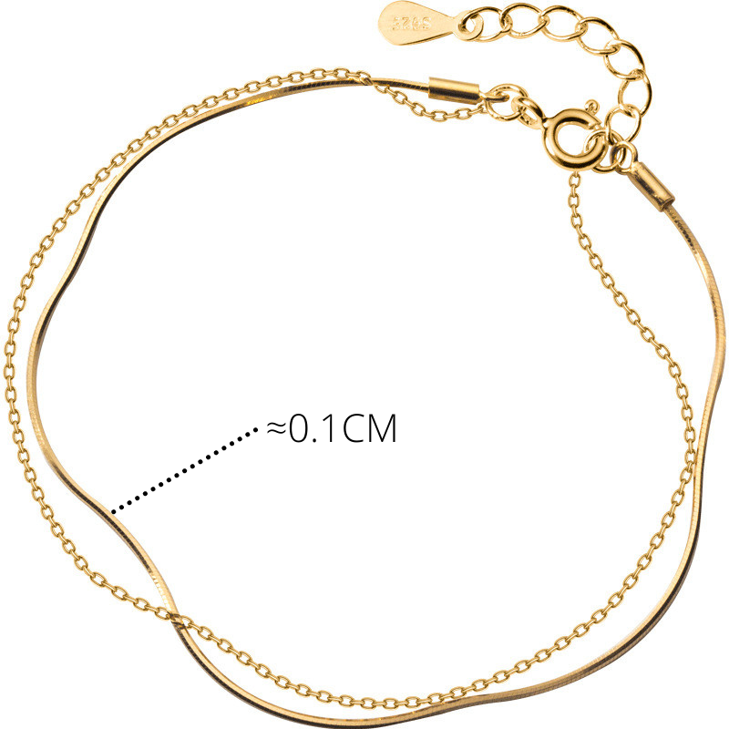 Nom du produit : Bracelet double chaîne et os de serpent en or