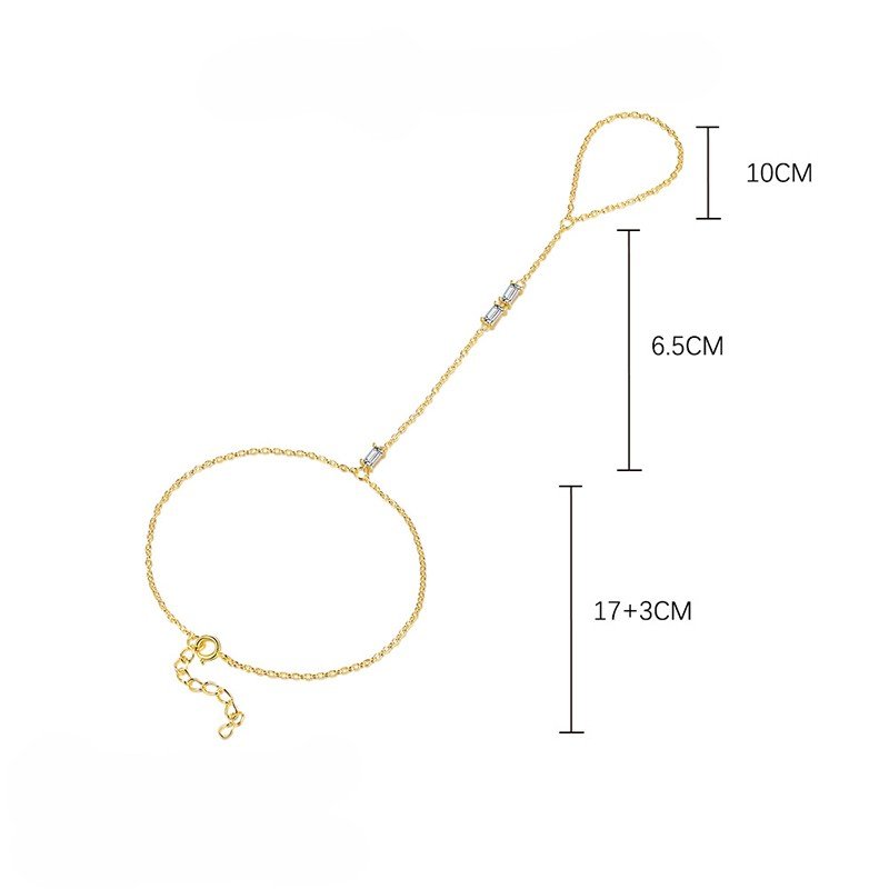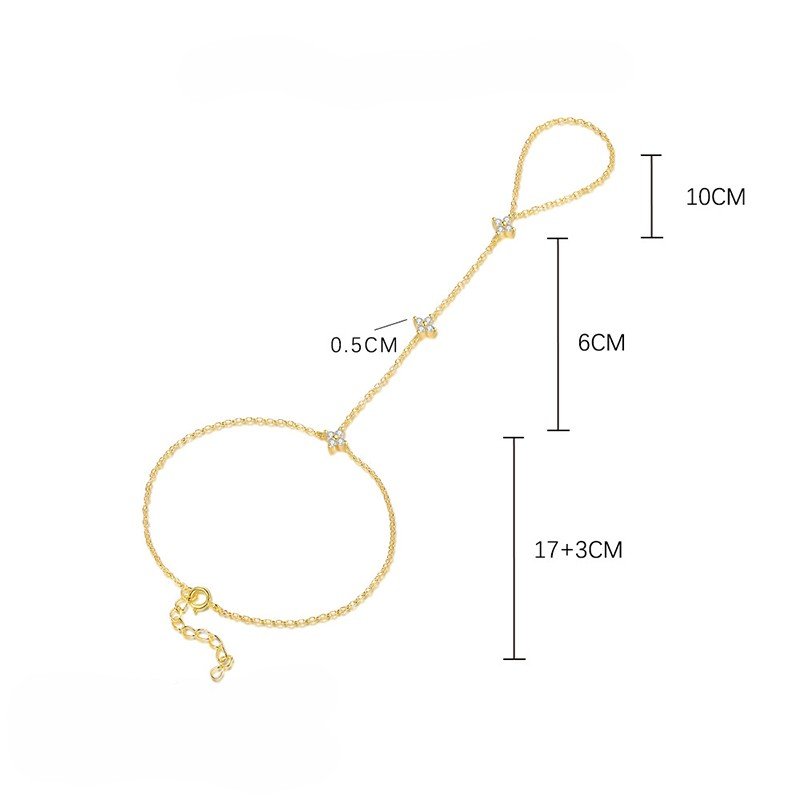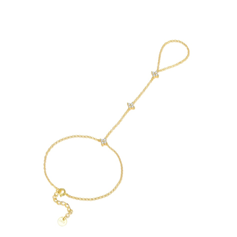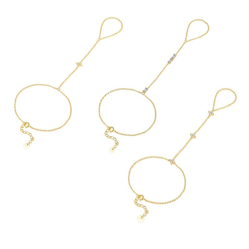 Disponible en trois modèles enchanteurs – étoile, carré et fleur – chaque bracelet est doté d'une délicate chaîne qui s'attache gracieusement du poignet au doigt, ajoutant une touche d'élégance à votre look. Les zircones scintillantes captent la lumière avec aisance, créant un éclat raffiné à chaque mouvement.