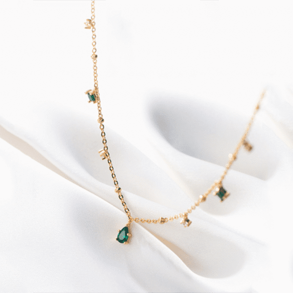 Laissez-vous séduire par le charme du collier Élégance Émeraude de Dolce Jewellery. Soigneusement confectionné avec le plus grand soin, il incarne l'essence même du luxe et symbolise à la fois élégance et grâce. Laissez ce collier captivant vous démarquer et ajouter une touche de glamour à chacune de vos tenues.