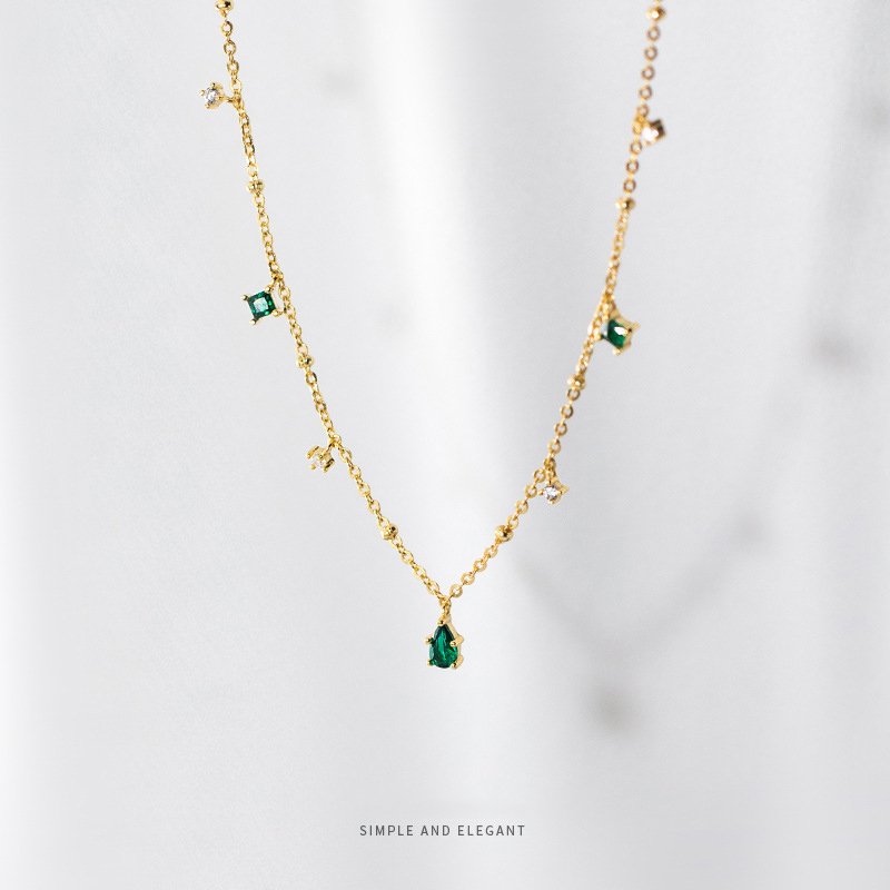 Entrez dans un univers de luxe et de sophistication avec le collier Élégance Émeraude, un bijou époustouflant conçu pour captiver et enchanter. Confectionné en argent sterling 925 véritable, ce collier chaîne clavicule met en valeur un magnifique agencement de pierres précieuses étincelantes.