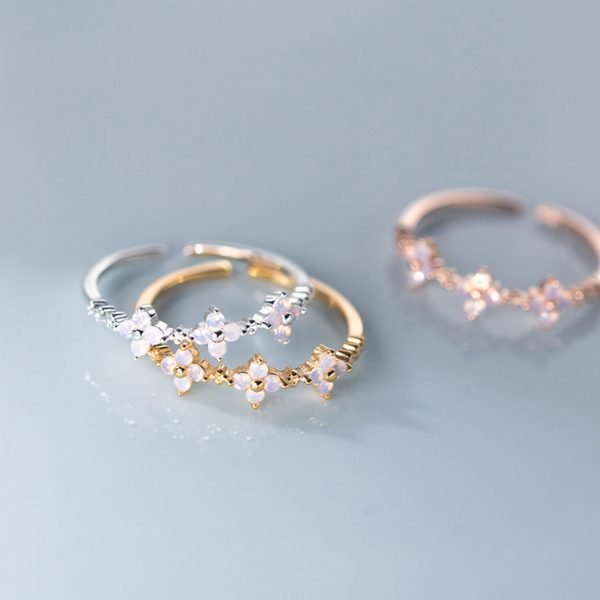Les fleurs de la bague sont minutieusement travaillées pour mettre en valeur la beauté et l'éclat du cristal de zircone. Les pétales facettés captent la lumière, créant un éclat envoûtant qui ne manquera pas de faire tourner les têtes. Le motif floral incarne la beauté, la féminité et la grâce naturelle, faisant de cette bague un choix idéal pour celles qui apprécient la délicatesse des fleurs.