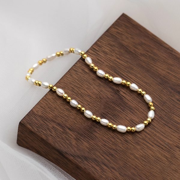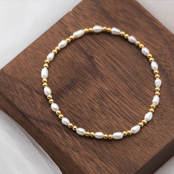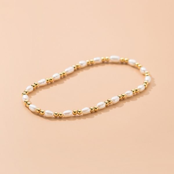 Doté de perles d'eau douce baroques naturelles et de belles perles dorées, avec un cordon intérieur élastique.