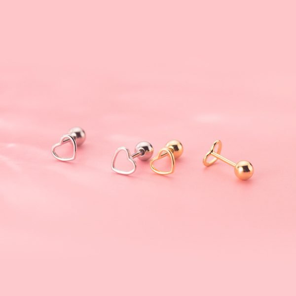 Nom du produit : Boucles d'oreilles à tige en forme de cœur creux