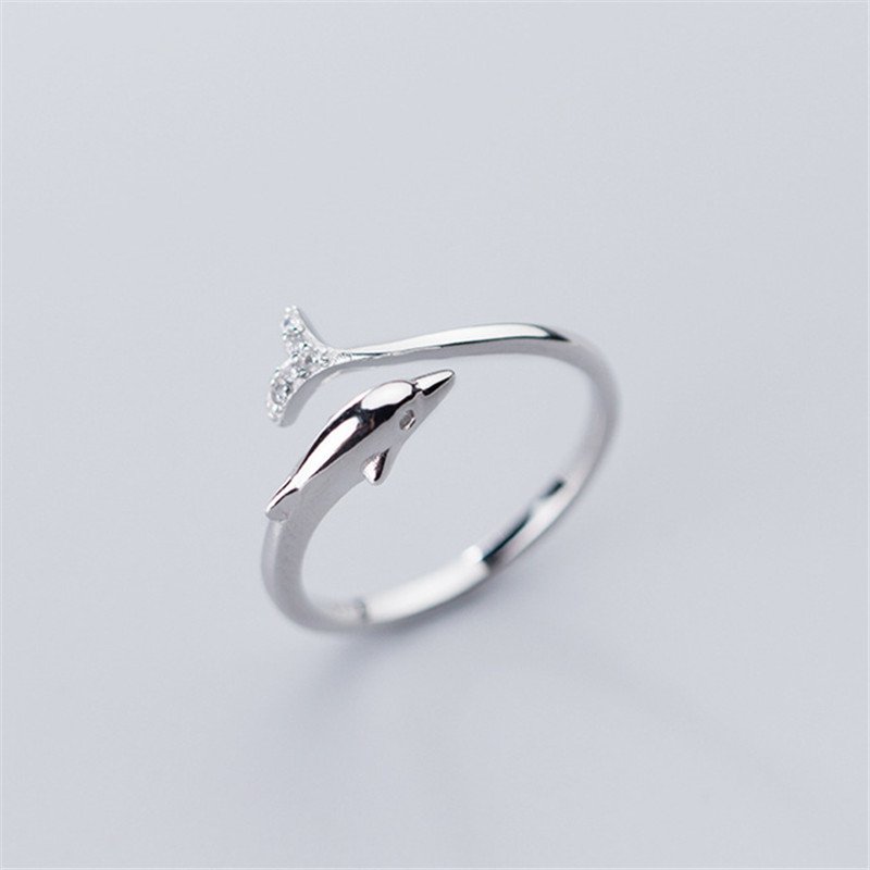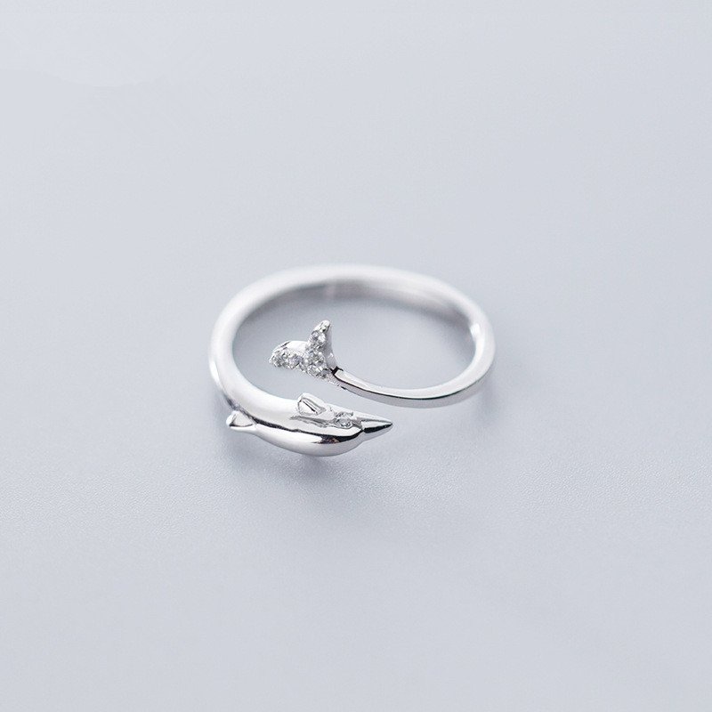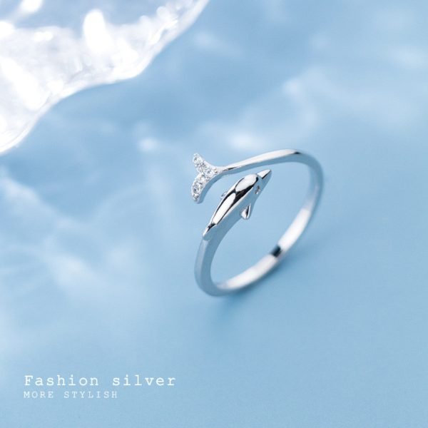 Le point fort de cette bague est son adorable motif de dauphin, finement détaillé et animé par sa pose ludique. Sur la queue du dauphin, de petites pierres de zircon scintillent et ajoutent une touche d'éclat, imitant le reflet du soleil sur l'eau.