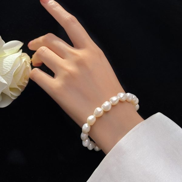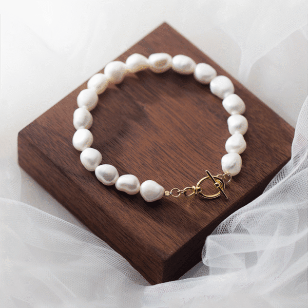 Admirez la beauté exquise du bracelet Pearl Elegance. Confectionné en argent sterling 925 véritable, ce bracelet met en valeur le charme des perles d'eau douce baroques naturelles, ajoutant une touche de raffinement à votre tenue.
