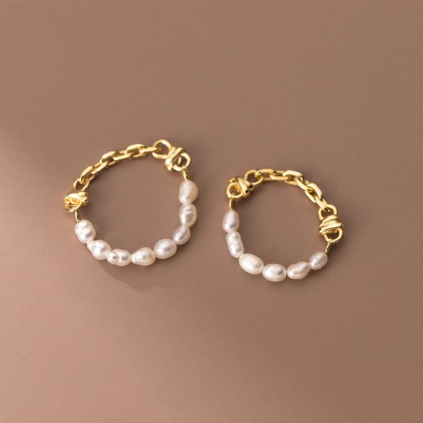 Les perles baroques naturelles de la bague sont soigneusement sélectionnées pour mettre en valeur leurs formes organiques et leur éclat irisé. Chaque perle témoigne de la beauté de la nature et ajoute une touche de sophistication à l'ensemble. La chaîne apporte une touche de modernité à cette bague classique en perles, la rendant ainsi polyvalente et se porte en toute occasion.