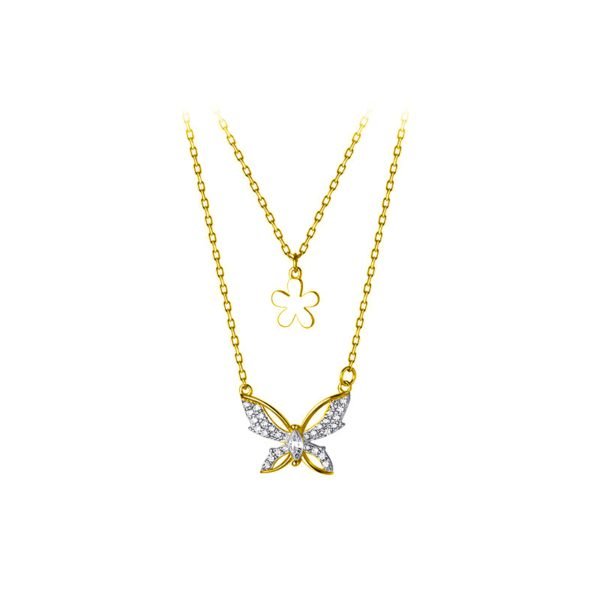 La chaîne plus grande est ornée d'un pendentif papillon envoûtant, orné de zircons scintillants. Les détails délicats du papillon lui confèrent un charme gracieux et romantique, capturant l'essence même de l'élégance et de la beauté.