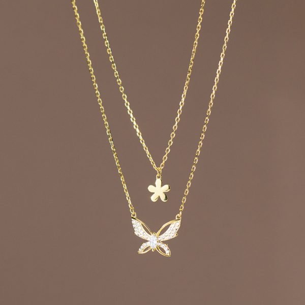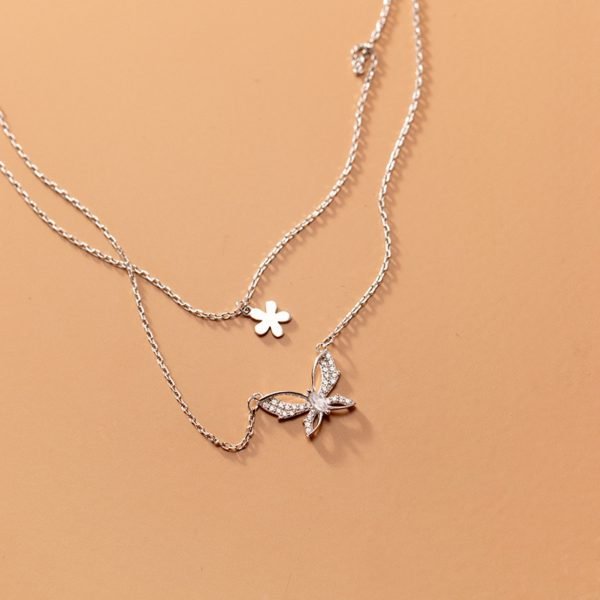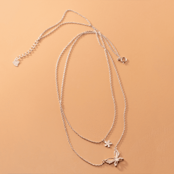 La petite chaîne est ornée d'un pendentif fleur simple mais charmant, ajoutant une touche de délicatesse et de féminité au collier. Son design subtil rehausse l'esthétique générale et complète parfaitement le pendentif papillon.