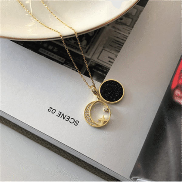 Découvrez l'allure éthérée du collier Stellar Beauty, un bijou raffiné en argent sterling 925 véritable. Ce collier raffiné est doté d'une délicate chaîne de clavicule ornée d'un double pendentif creux étoile et lune, relié à un pendentif ciel nocturne, qui peuvent être combinés pour créer un design d'inspiration céleste qui capture l'essence de l'élégance.