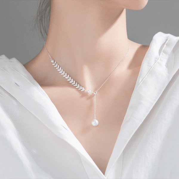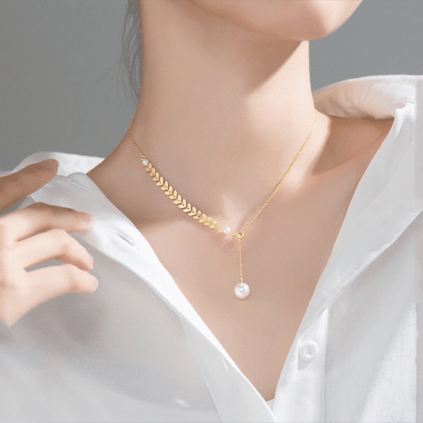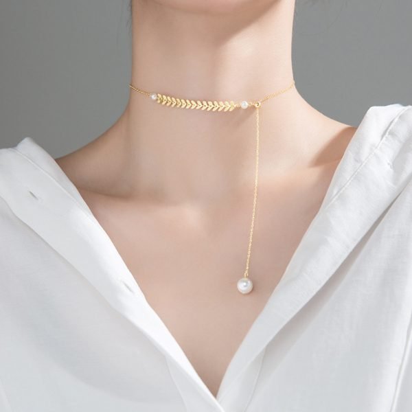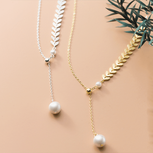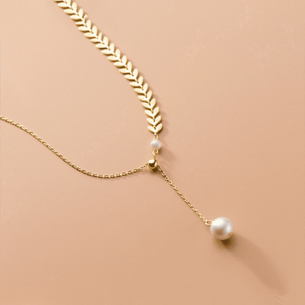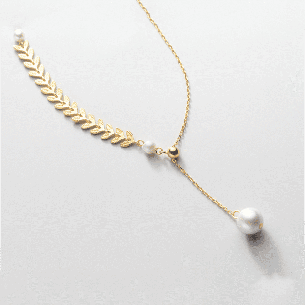 Nom du produit : Épi de blé Collier de perles en forme de feuille