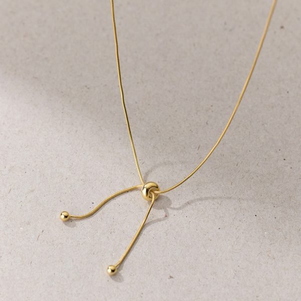 The minimalist charm of this necklace exudes a sense of understated sophistication, making it a perfect accessory for both casual and formal wear. The subtle shimmer of the light beads adds a touch of allure to your neckline, while the snake bone chain brings a contemporary edge to the design.